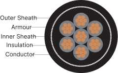 • Armouring: Single armouring of galvanised steel strip / wire