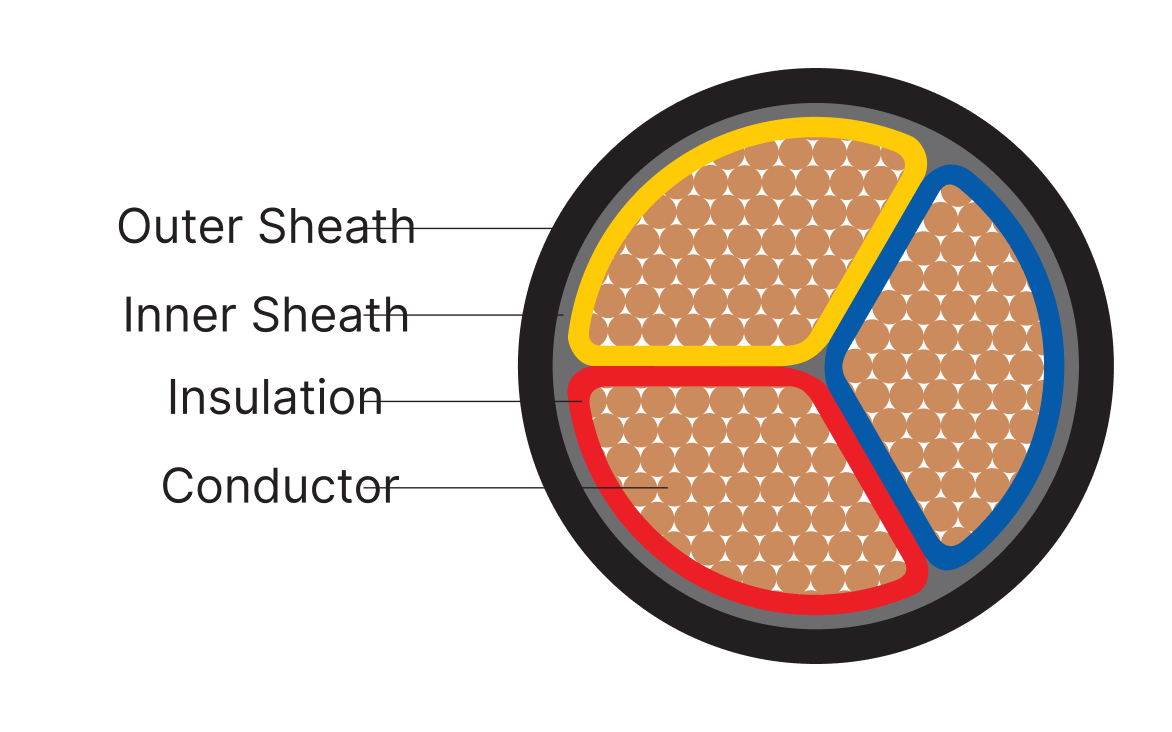 Outer Sheath: PVC Type ST – 2 as per IS 5831 (Option : FR Type / FRLS Type)