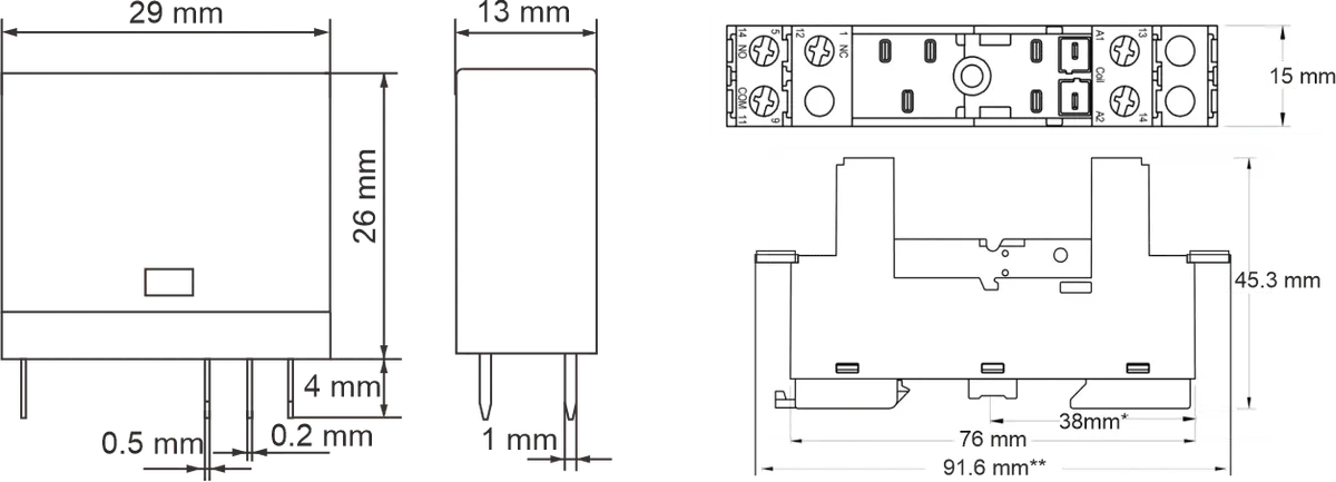 Connectwell CRM Series Modular Miniature Relay with Base 1 Changeover, Input Voltage : 115 V AC, Contact Current Rating :10 AMPS, Switching Power 2500 VA / 300 W.