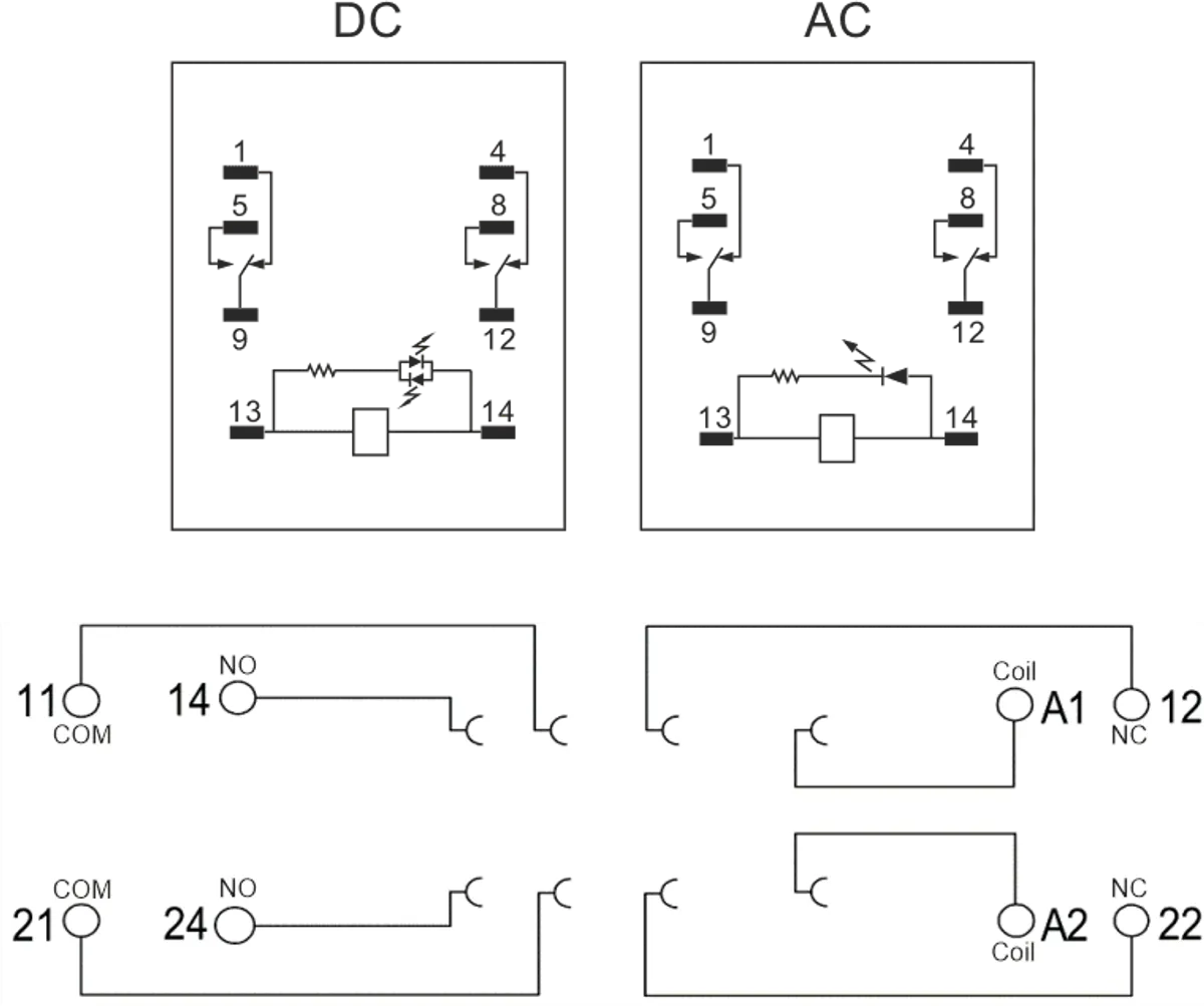 Connectwell CRM Series Modular Power Relay with Base 2 Changeover, Input Voltage : 12 V DC, Contact Current Rating :12 AMPS, LED Manual Over Ride (Test Button) Switching Power 3000 VA / 360 W.