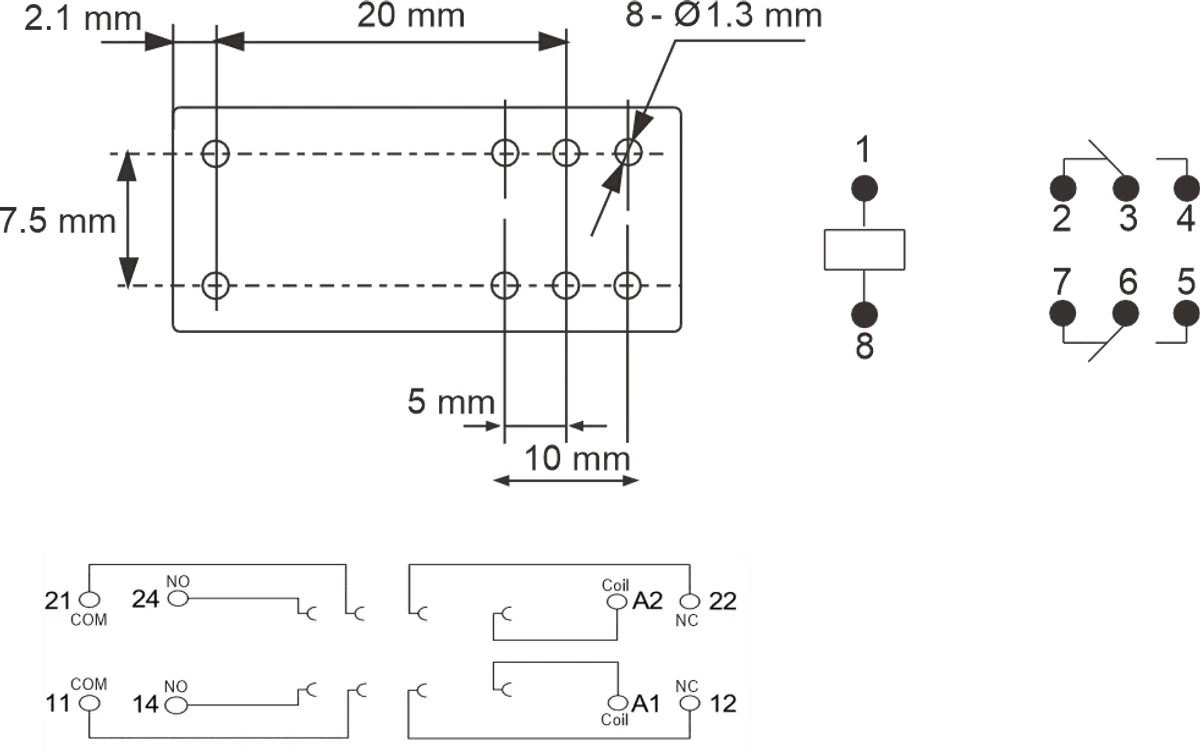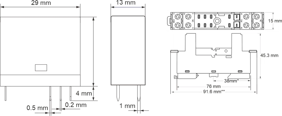 Connectwell CRM Series Modular Miniature Relay with Base 2 Changeover, Input Voltage : 24 V DC, Contact Current Rating :5 AMPS, Switching Power 1250 VA / 150 W.