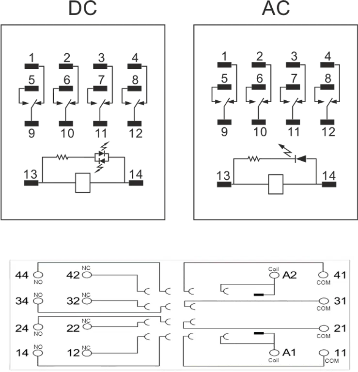Relay with Base 4CO 24VAC 6A LED Test Button