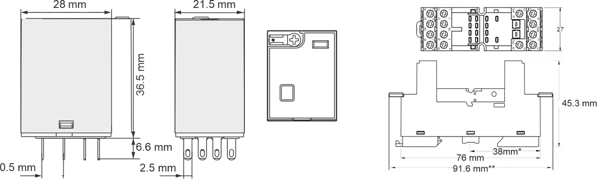 Connectwell CRM Series Modular Power Relay with Base 4 Changeover, Input Voltage : 230 V AC, Contact Current Rating :6 AMPS, LED Manual Over Ride (Test Button) Switching Power 1500 VA / 180 W.