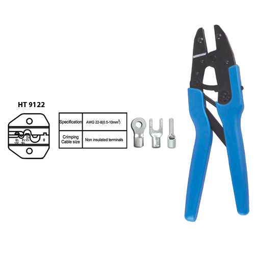 - The 10” handle provides long and increased leverage while crimping. Comes with a ratchet action mechanism providing easy repeatable & reliable crimping with built in dies for desired crimping terminals.